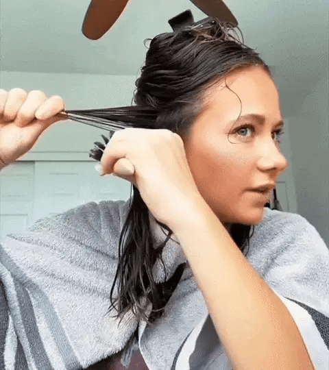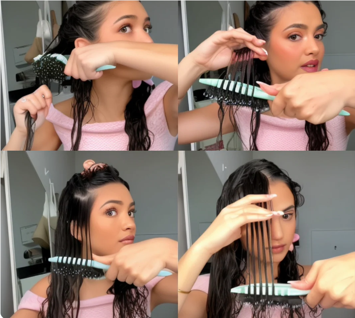 Börja med fuktiga lockar och din favoritprodukt. Borsta långsamt nedåt och se hur dina lockar omedelbart förvandlas till släta och glansiga hårstrån. Det är en enkel och märkligt tillfredsställande upplevelse.