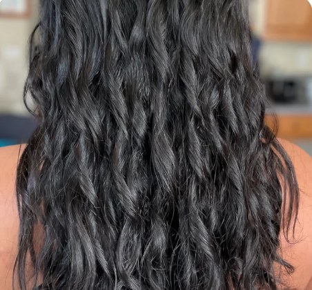 Lockarna formas till glänsande spiraler med några få drag, utan frissiga vågor och utan att behöva fixas om.